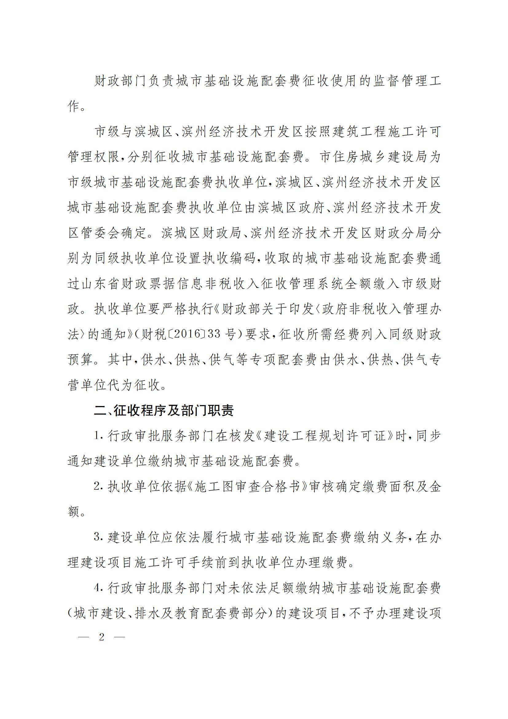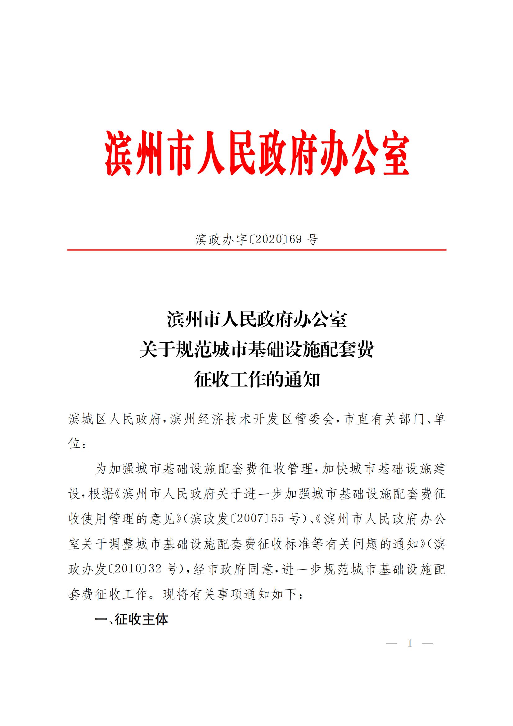 濱州市人民政府辦公室關于規(guī)范城市基礎設施配套費征收工作的通知
